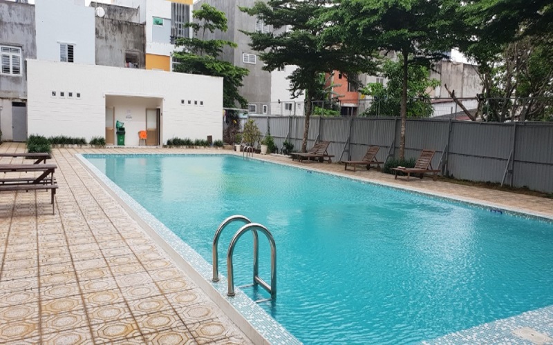 Có diện tích trên 800 m2 trong đó khu bể bơi khoảng trên 500 m2.