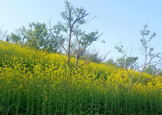 Đồi hoa vàng được xây dựng dựa theo thế đất, thế đồi để không phá vỡ không gian vốn có ở đây, chủ nhân khéo léo kết hợp giữa những luống hoa, luống cải, vườn hồng để cảnh quan thêm phần nổi bật và sinh động.