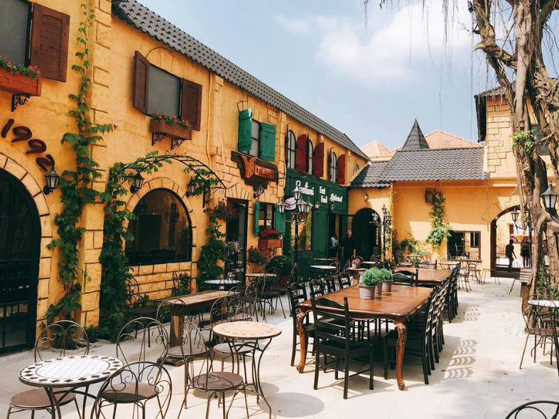 Thiên đường Châu âu này có tên là Serafim Alley do một người chủ trẻ tuổi đã bỏ rất nhiều tâm huyết để xây dựng. Serafim Alley mang hơi hướng kiến trúc Pháp cổ xưa, điểm nhấn là những ngôi nhà lợp mái ngói được sơn màu vàng cổ điển nhưng cũng không kém phần hiện đại; những khung cửa sổ màu xanh lãng mạn, những bức tường đất; xung quanh được bố trí những tiểu cảnh, nhiều cây xanh tạo nên một không gian mát mẻ.