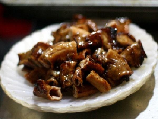 Phèo nướng lu là món ăn dành cho dân nhậu nhưng cũng được các bạn trẻ ở đây dùng làm món ăn vặt. Với những miếng phèo vàng ruộm, thơm lừng sẽ khiến bạn no bụng và no cả con mắt