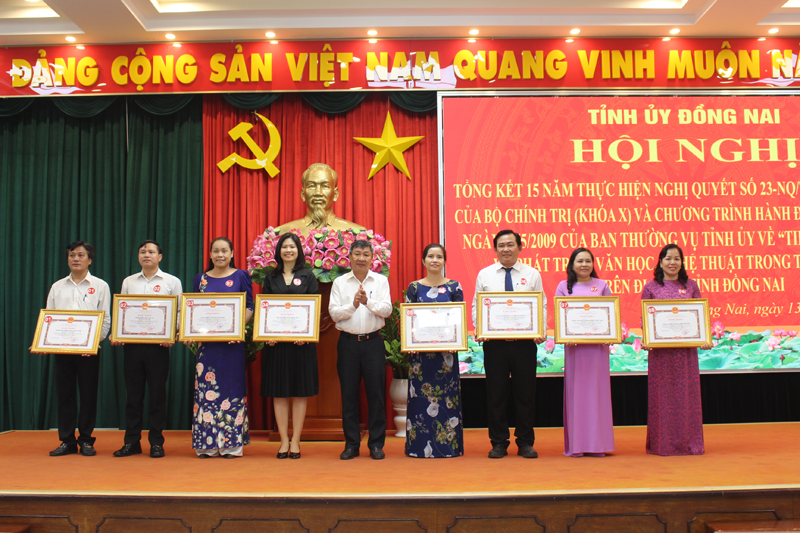 Sáng 13/4, tại Hội trường Tỉnh uỷ, các đồng chí: Hồ Thanh Sơn, Phó bí thư Thường trực Tỉnh ủy; Phạm Xuân Hà, Ủy viên BTVTU, Trưởng ban Tuyên giáo Tỉnh ủy; Nguyễn Sơn Hùng, Phó chủ tịch UBND tỉnh đã chủ trì Hội nghị tổng kết 15 năm thực hiện Nghị quyết số 23-NQ/TW ngày 16/6/2008 của Bộ Chính trị (khóa X) và Chương trình hành động số 78-CTr/TU ngày 29/5/2009 của BTV Tỉnh ủy về “Tiếp tục xây dựng và phát triển văn học nghệ thuật (VHNT) trong thời kỳ mới” trên địa bàn tỉnh Đồng Nai.