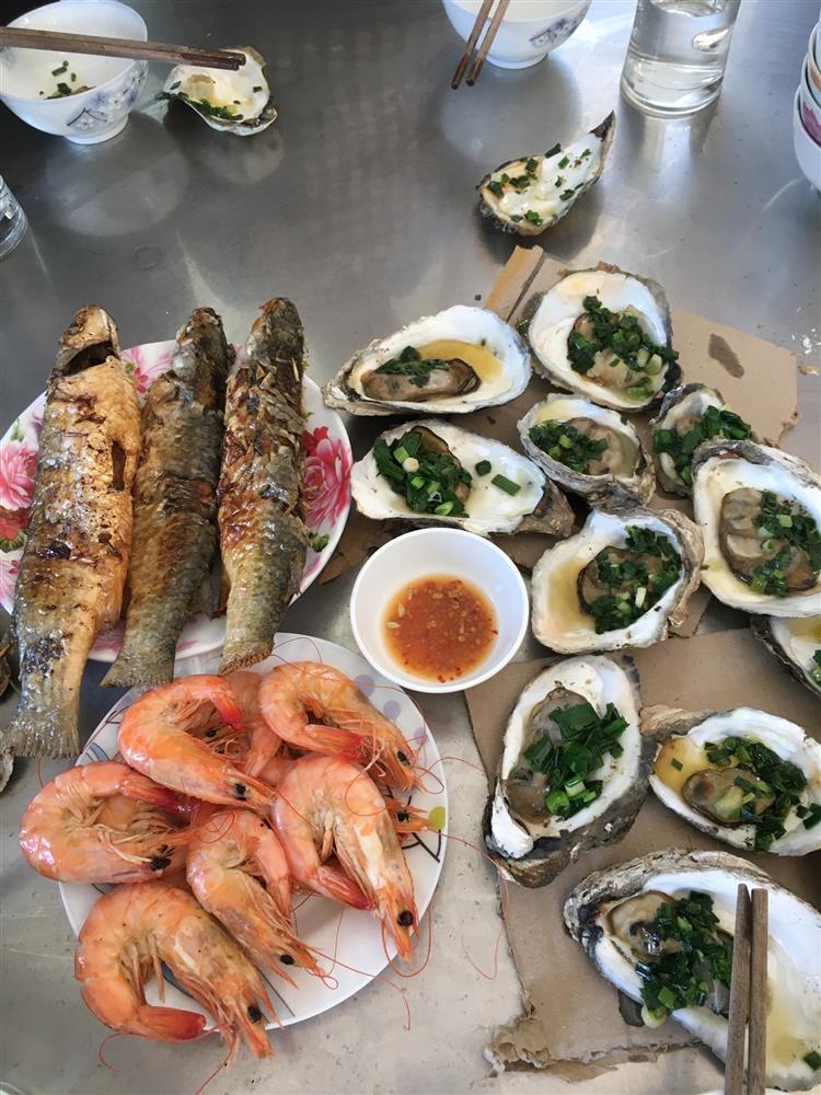Đoàn dùng cơm trưa tại phân trường với thực đơn khá thịnh soạn được các anh em kiểm lâm tiếp đãi như: Cá đối nướng, hào nướng mỡ hành, tôm hấp, lẩu cá ngát nấu ngót… Có thể do sống trong môi trường tự nhiên mà tôm cá nơi đây rất tươi ngon.