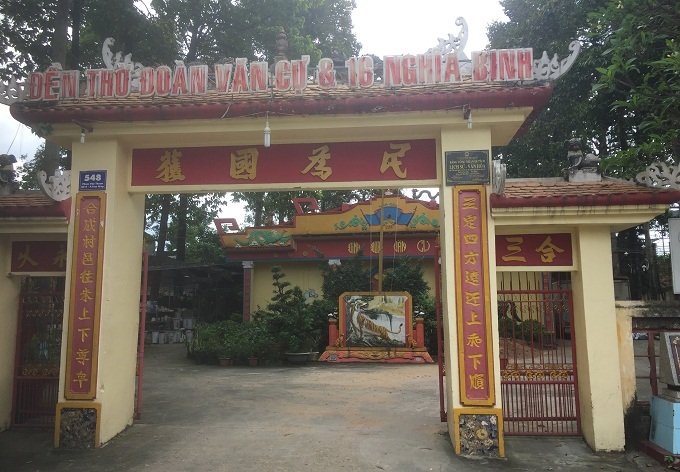 Đây là di tích lịch sử danh nhân có giá trị ở Đồng Nai, gồm hai phần: mộ và đền thờ. Phần mộ là nơi an táng Đoàn Văn Cự, thủ lĩnh hội kín Thiên Địa hội ở Biên Hoà và 16 nghĩa binh tử vong trong trận tấn công của Pháp vào bưng Kiệu năm 1905. Đây cũng là nơi mà lúc sinh tiền Đoàn Văn Cự xây dựng căn cứ kháng chiến. Mộ tọa lạc trên khu bình địa tổng kho Long Bình, phường Long Bình, cách trung tâm thành phố Biên Hoà 8km đường chim bay.
