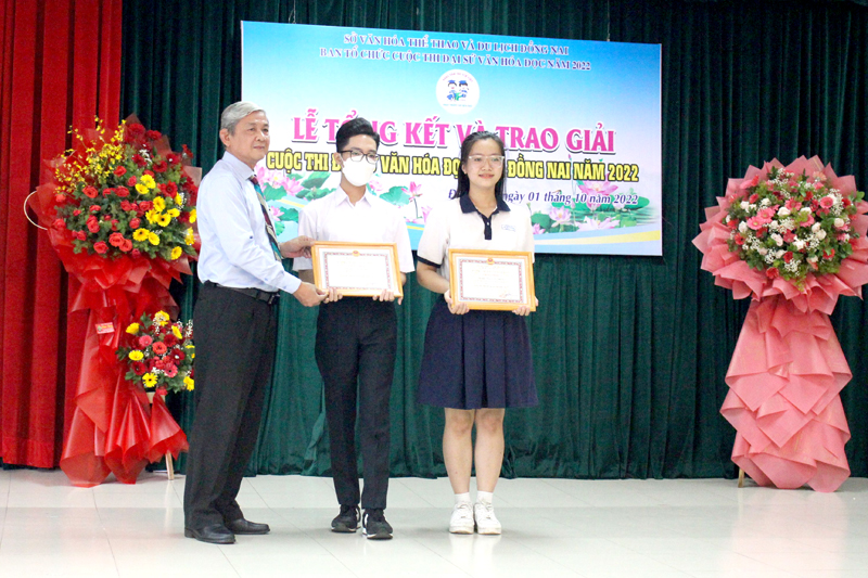 Lễ Tổng kết và trao giải Cuộc thi Đại sứ Văn hóa đọc tỉnh Đồng Nai năm 2022 05/10/2022 14:50:06 Sáng ngày 01/10, tại Hội trường Thư viện tỉnh, Sở Văn hóa, Thể thao và Du lịch tỉnh đã tổ chức Lễ Tổng kết và trao giải Cuộc thi Đại sứ Văn hóa đọc tỉnh Đồng Nai năm 2022